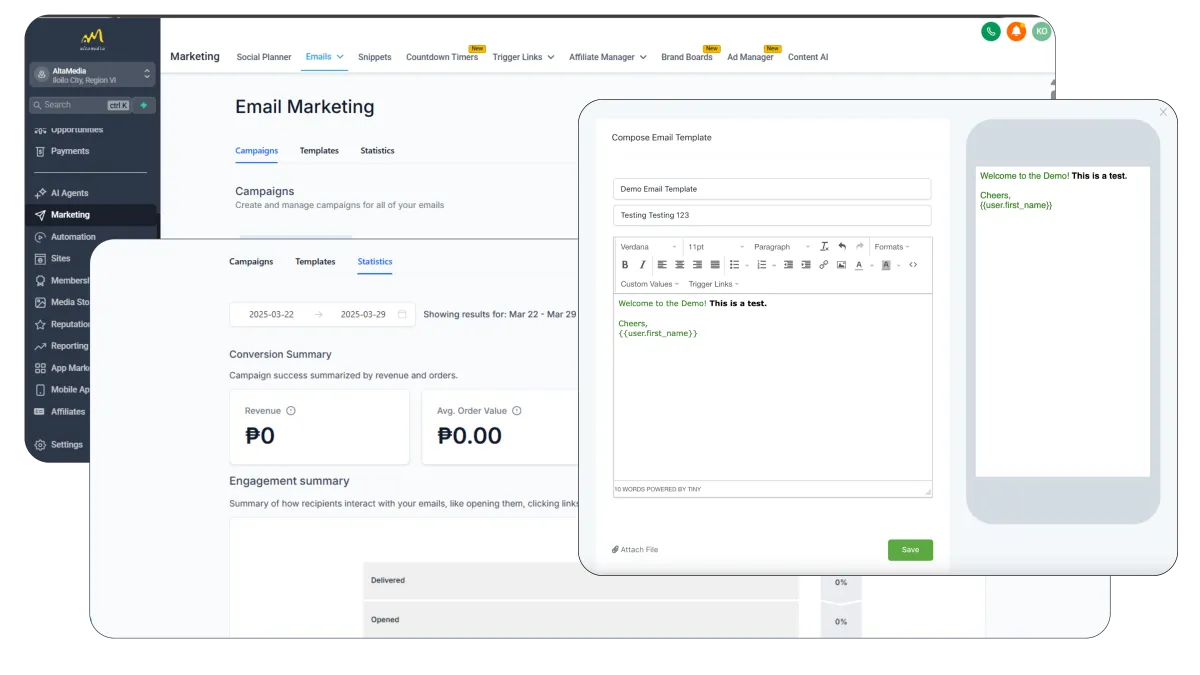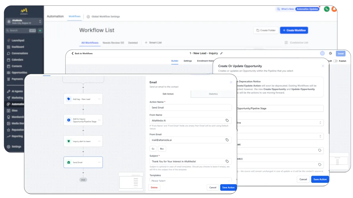 At AltaMedia, we provide a comprehensive suite of tools designed to streamline and automate your business operations, helping you save time and drive growth. From CRM to email marketing, we've got everything you need in one easy-to-use platform.